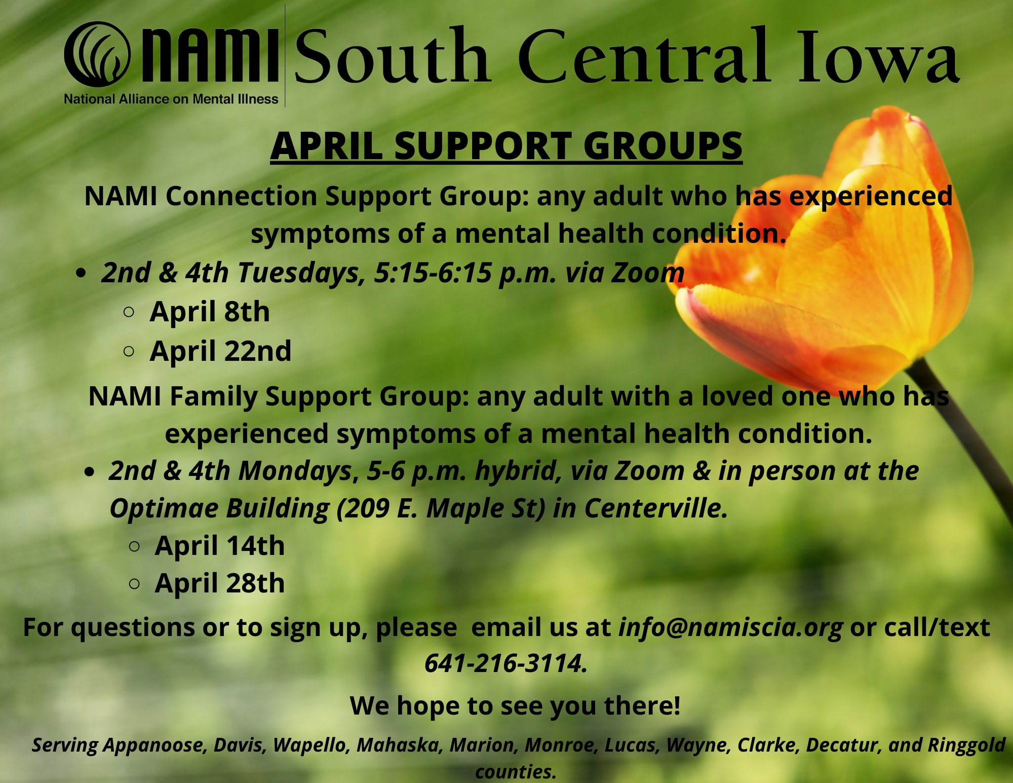 To sign up or for questions, please email us at info@namiscia.org.